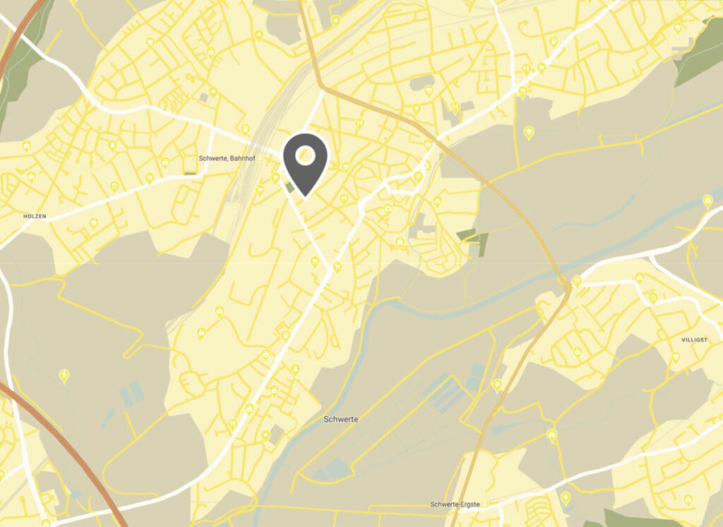 Unsere Praxis lässt sich vom Schwerter Hauptbahnhof innerhalb von 10 Minuten fußläufig erreichen. Mit dem ÖPNV dauert die Fahrt zur Haltestelle “Marienkrankenhaus Goethestraße” nur drei Minuten mit verschiedenen Buslinien. Von Dortmund aus dauert eine Zugfahrt nur ca. 20 Minuten.